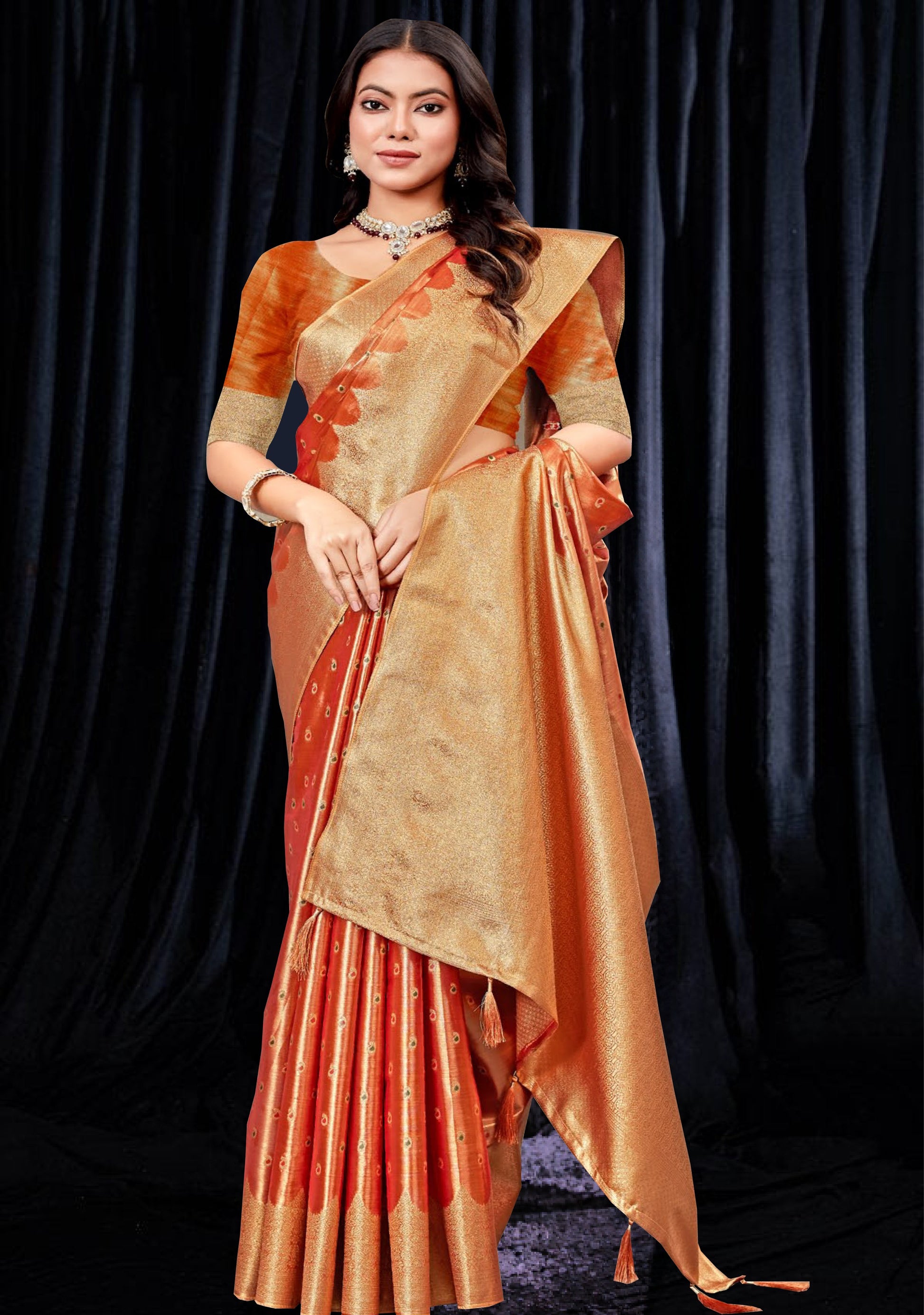 Coppery Orange pure tissue Silk Saree