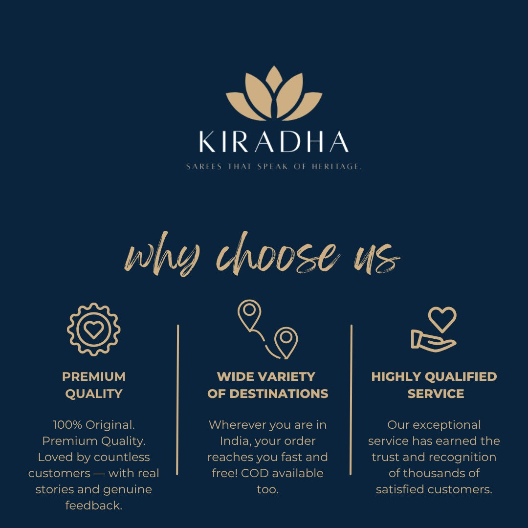“Kiradha never disappoints. I’ve bought three sarees so far — each one unique and beautifully packed. The craftsmanship truly reflects traditional artistry.”